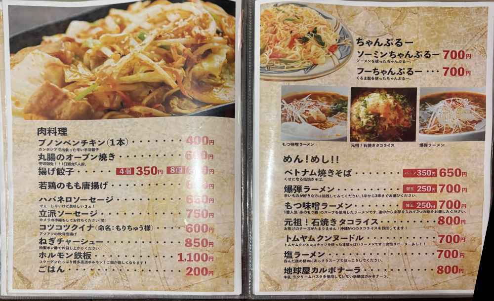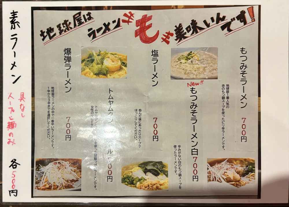 地球屋のメニュー