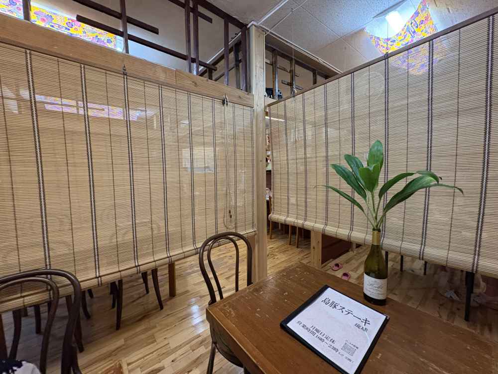 テーブル席が複数あり、のれんで軽く仕切られている。カウンター席もあり、一人客でも利用しやすい。