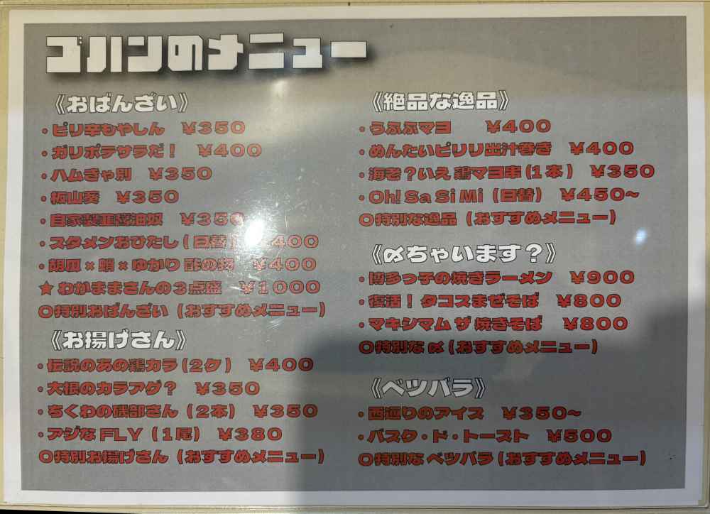 ゴハンのメニュー