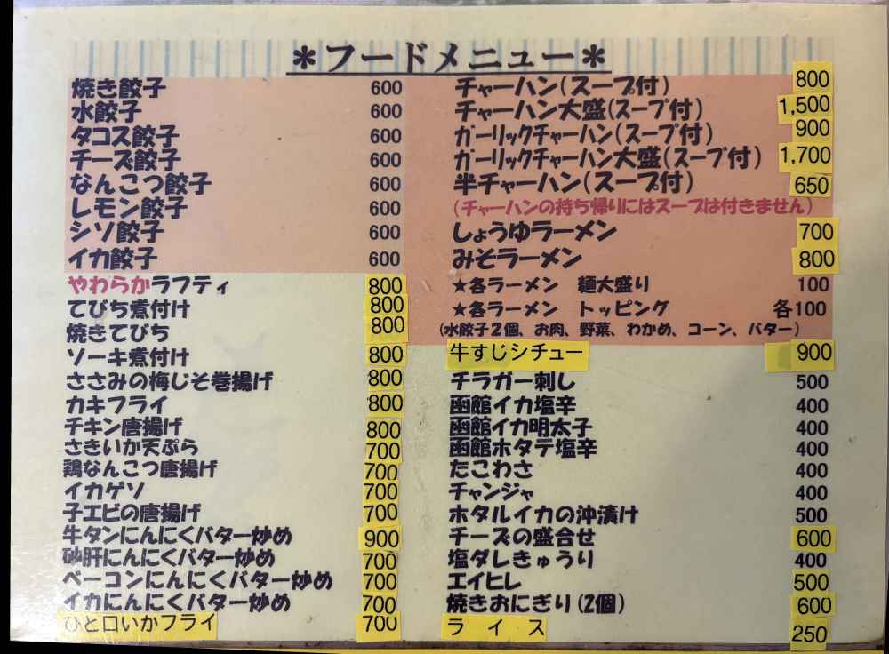 栄町通りにある餃子、チャーハン、ラーメンを中心とした居酒屋さん。