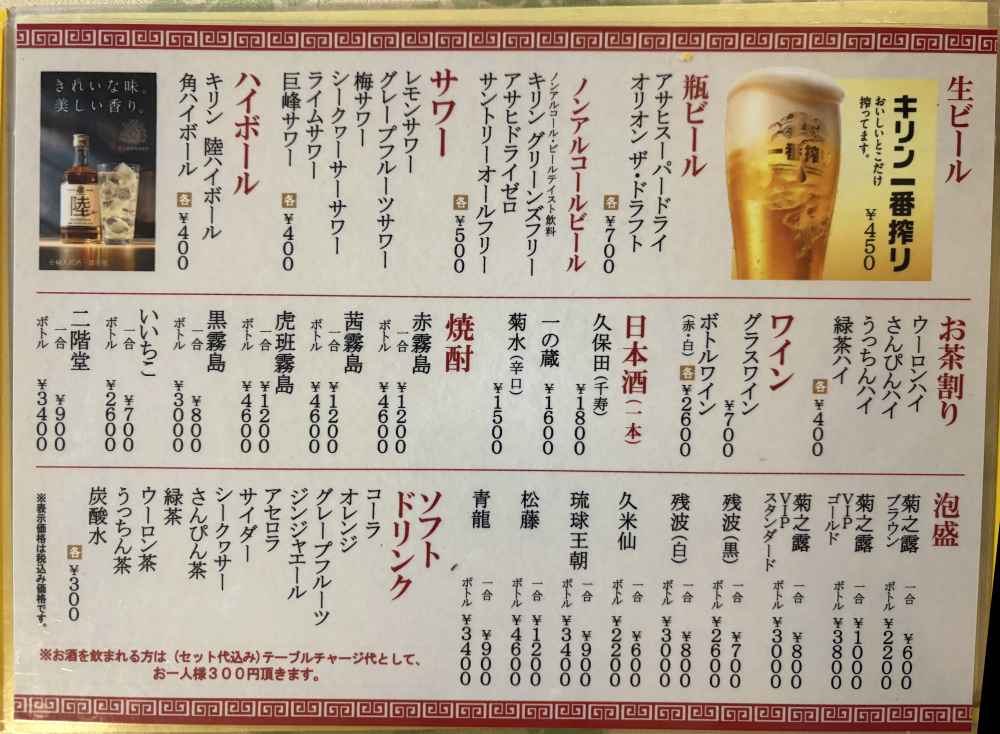 ウーロン茶……300円