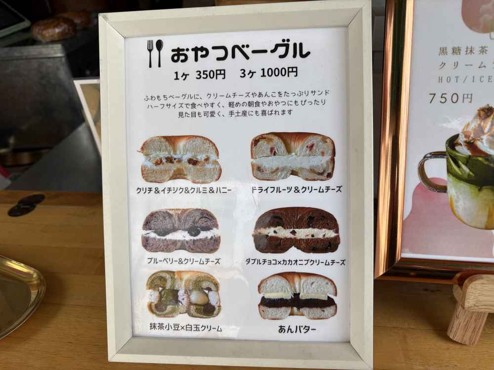 ロータリー近く、ムジルシの間借り営業をしているベーグル&抹茶屋さん。